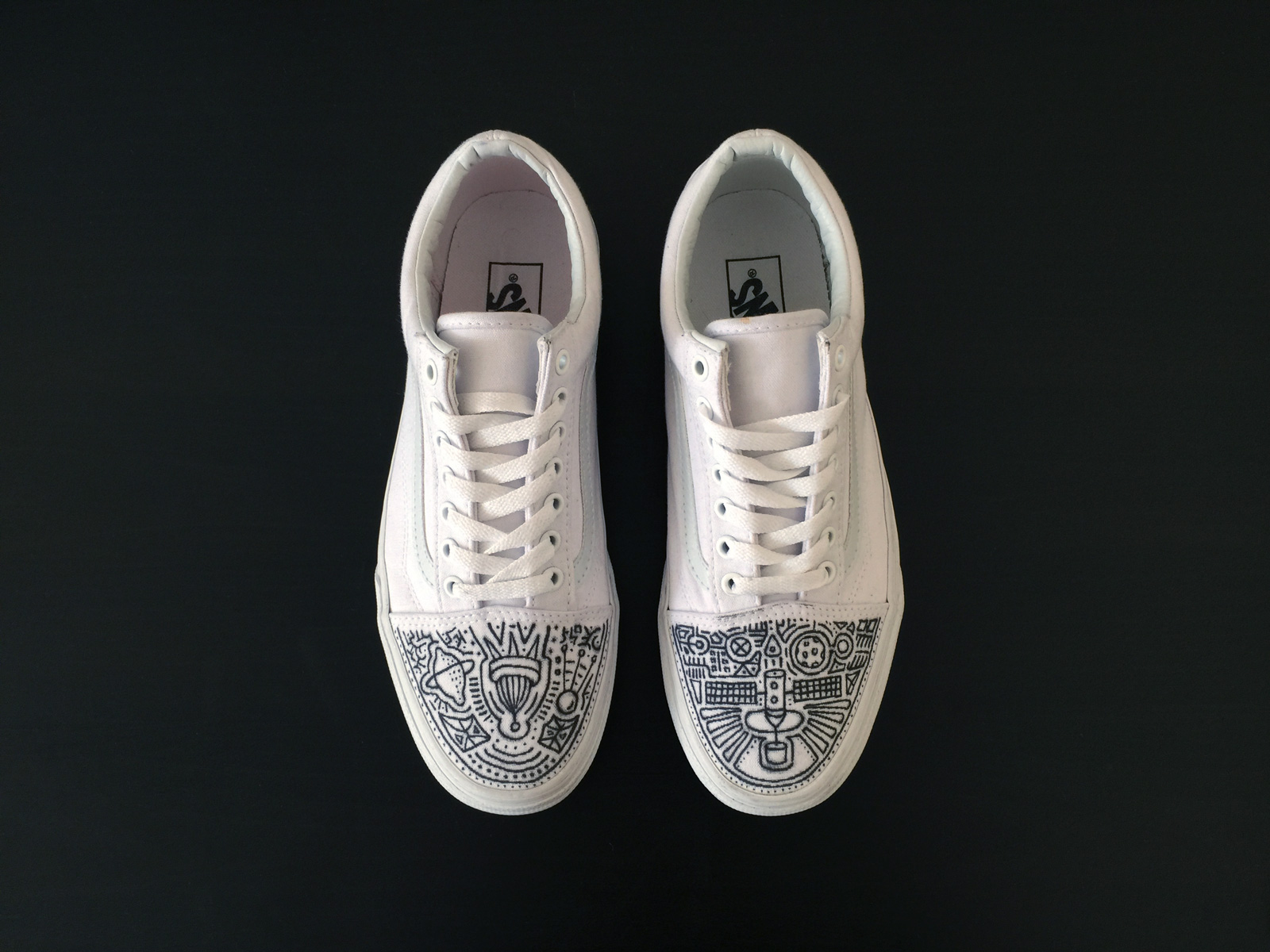 Personal Project — Cutsom illustrated pair of white Vans shoes, created for a good friend as a birthday present.